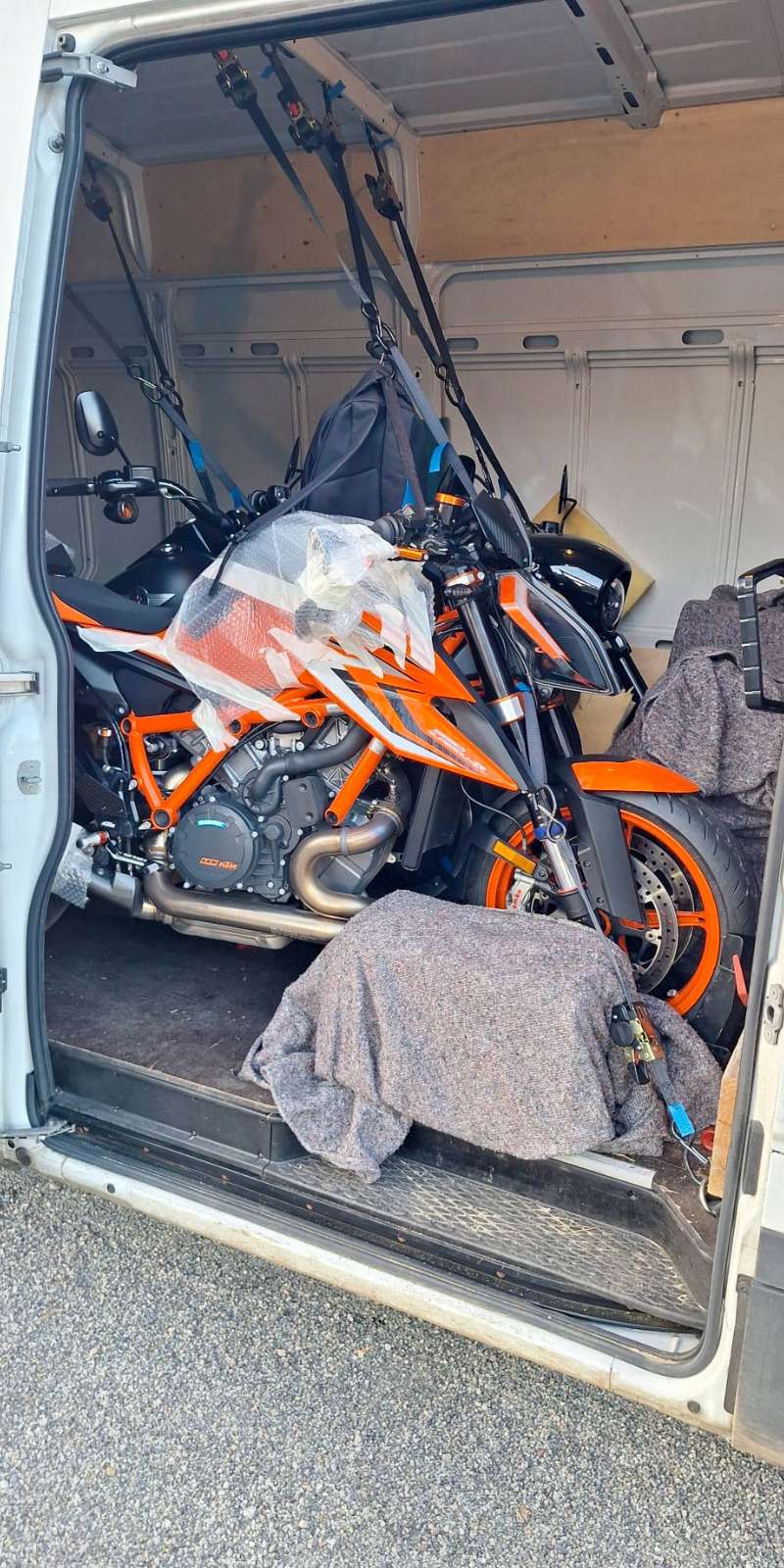 Grâce à Transport Moto NT, votre moto bénéficie du meilleur équipement de transport. Sécurisée, stabilisée et surveillée en temps réel, elle voyage dans des conditions optimales, pour une tranquillité d’esprit absolue.
