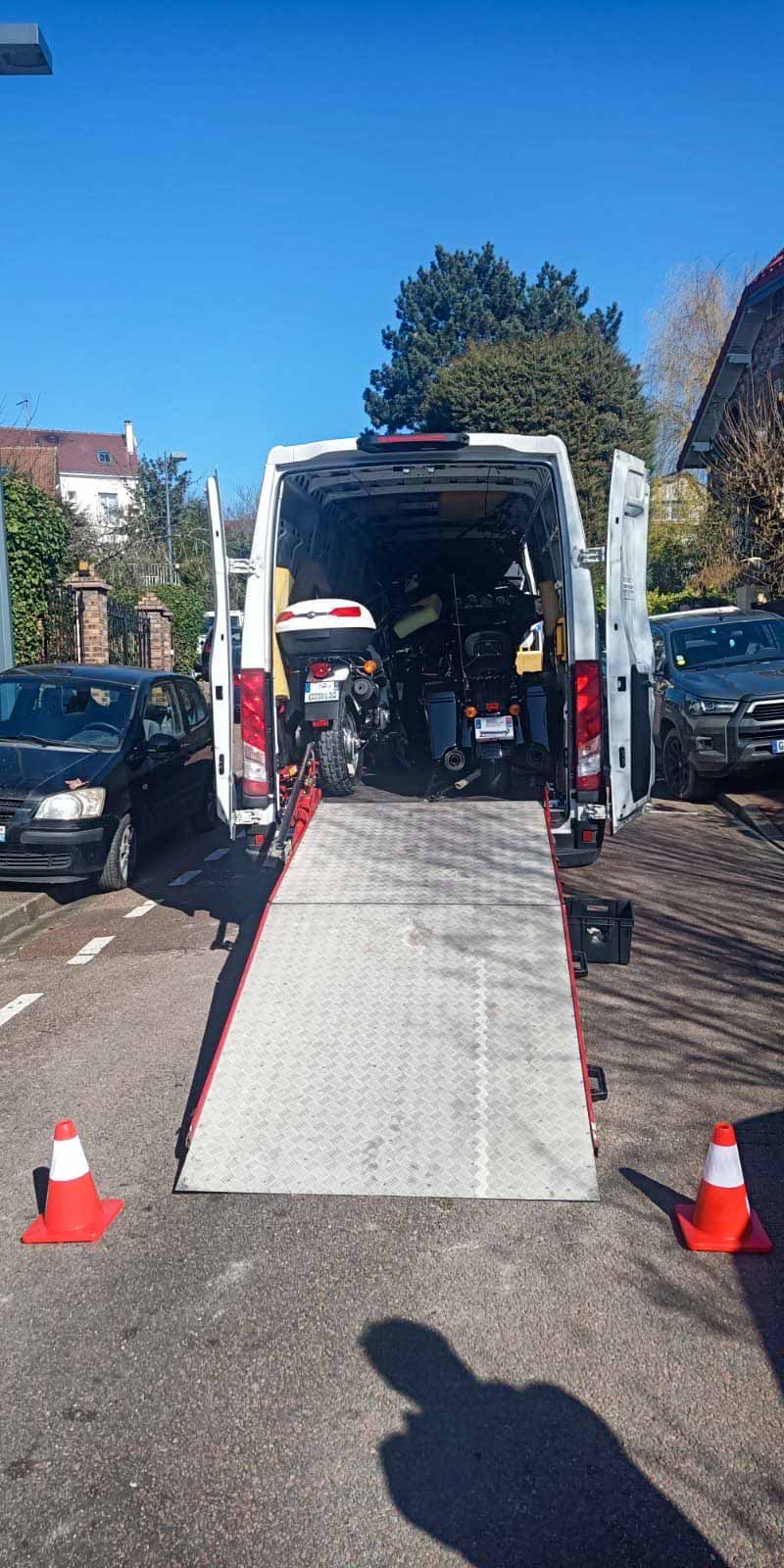 Pour garantir une immobilisation parfaite de votre moto durant le transport, nos camions sont équipés de sabots de maintien robustes. Ces supports assurent un parfait équilibre du deux-roues, évitant tout mouvement involontaire pendant le trajet. De plus, nos véhicules disposent de rampe d’accès spécifiques, facilitant un chargement et un déchargement en douceur, sans risque de basculement ou de choc.
